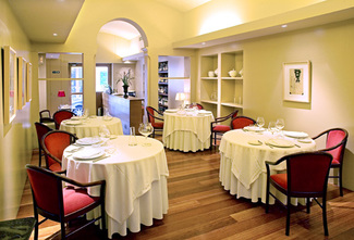 El restaurante, inaugurado en los años 90, está en una casa de dos pisos en la zona alta de la ciudad condal, su nombre es un homenaje al tranvía que pasaba antaño por la calle Major de Sarrià, justo delante de su local. El restaurante esta decorado de manera elegante, los colores de las paredes son cálidos y el suelo es de parquet , es confortable, se respira el "bien-être". Dispone de varias salas privadas y una terraza, aunque yo solo conozco la sala principal que es donde hemos cenado las dos veces que lo hemos visitado. Esta está ubicada junto a la entrada del restaurante, tras atravesar un pequeño hall con una barra de bar y una mesa para 4 comensales y subir 3 o 4 peldaños bajo una arcada que nos da la bienvenida. Hay tres grandes mesas redondas, una mesa rectangular y una pequeña cuadrada, lo que le da un aforo de unos 18 o 20 comensales. Las mesas están muy bien vestidas, con manteles largos blancos de tela y buena vajilla y cubertería. Las copas son Riedel. El servicio de sala es bueno, cercano y educado. La sala está muy bien dirigida por Reyes Lizan, esposa del Chef, que al mismo tiempo ejerce como sumiller. El Servicio del vino también es bueno, descorche, primera cata, y seguimiento durante toda la cena, no me atardé en la carta, porqué vi en la pagina de vinos aconsejados ese día uno que nos traía buenos recuerdos vacacionales y no busqué mas.