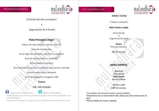 Muchas veces no le damos a las RRSS la importancia que realmente tienen, veréis. Sábado por la mañana, cual tic de difícil corrección me dispongo a mirar prensa, correo electrónico y FB entre otros. Bendita fortuna ver información actualizada sobre el menú que se disponía ese día en Mulandhara. Acto seguido se lo enseño a Mara y ya encontramos la excusa perfecta para comer fuera de casa, permitidme el juego de palabras pero es lo que tiene no tener remedio como muchos de los de por aquí ;-)