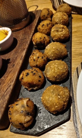 *Croquetas mix. De cecina y boletus y de mejillones y necora. Ricas aunque el relleno algo mas cremoso se agradeceria