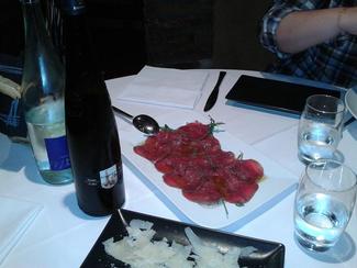 Empezamos con un carpaccio de solomillo , rico , y sobre todo con muchísimas lascas de parmesano , a 14,40+iva.
