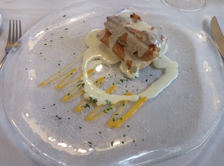 - Hojaldre relleno de setas, puerros y gambas: Hojaldre crujiente relleno de las verduras y las gambas en su punto, todo ello napado por una ligera salsa de nata. Ejecución perfecta y de nuevo mucho sabor.