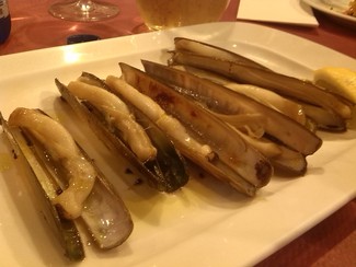 A continuación unos berberechos xl, de maravilla, recién abiertos, jugosos, una delicia, gran tamaño, 12€.