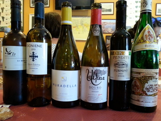 Copita de champagne claude cazals, Fulcro 08, Dorado superior 05, el sorpreson para mi, Pazo Señorans 04, espectacular, pinot noir de rodri 09 y por ultimo perdón de Raúl perez, estos dos últimos obsequios de la casa pues aun no se comercializan.