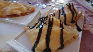 Cerramos la comida con una tarta de chocolate y galleta (llamada de la abuela) y unas cañas de crema.