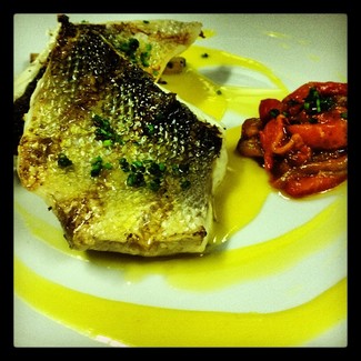 5.- Bacalao sobre concasé de tomate. Jugoso, sabroso, en su punto. Muy bien.
