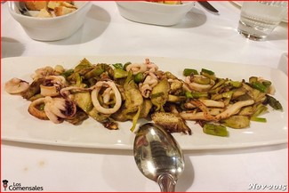 ─ Calamares con alcachofas (1 x 16,50€). Muy bueno. Los sabores de la verdura y los calamares se mezclan en un conjunto bastante armonioso.
