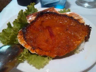 A continuación una de pulpo a feira, abundante y muy rica ración 12,90+iva, yo me pedí una vieira a la gallega jugosa vieira tapada por una fina capa para el horneo por 5,5€+iva.