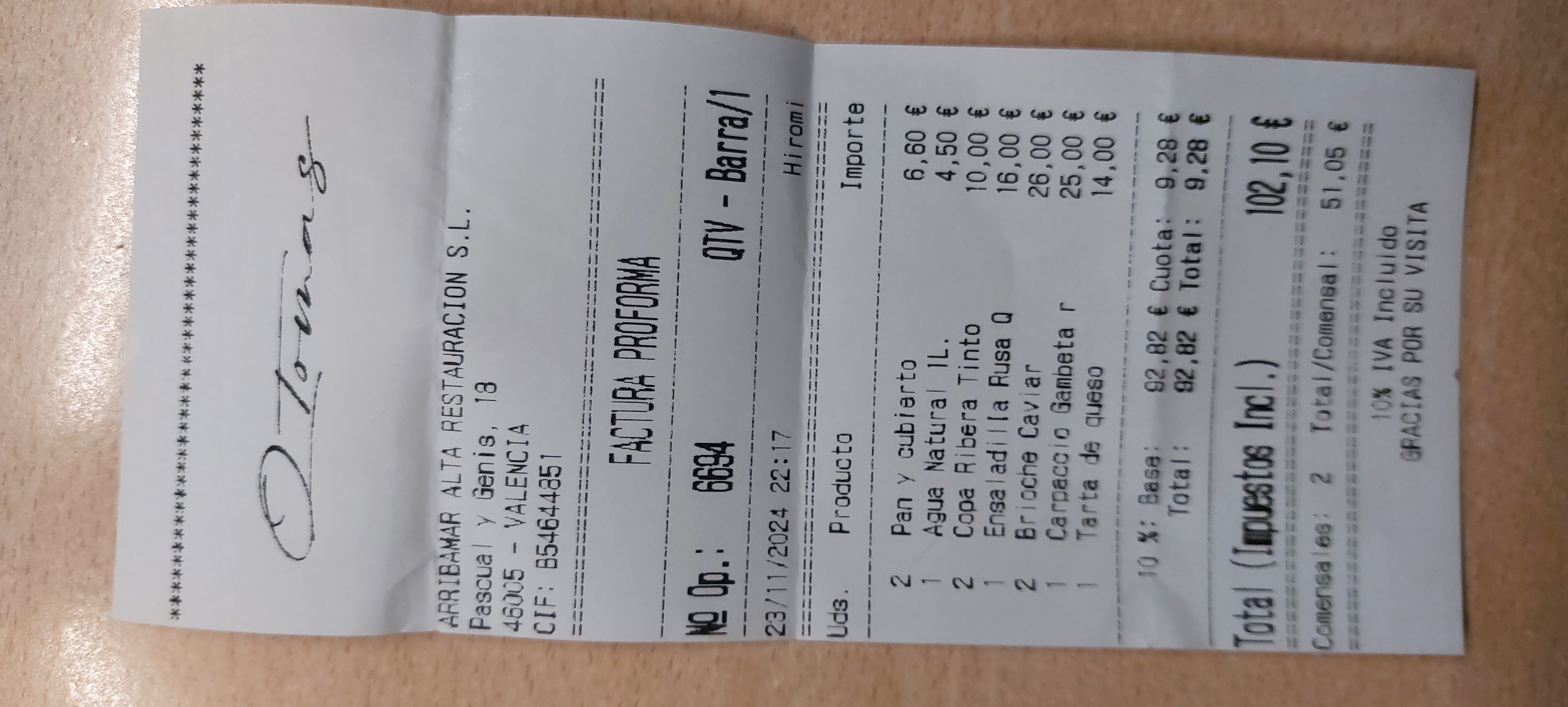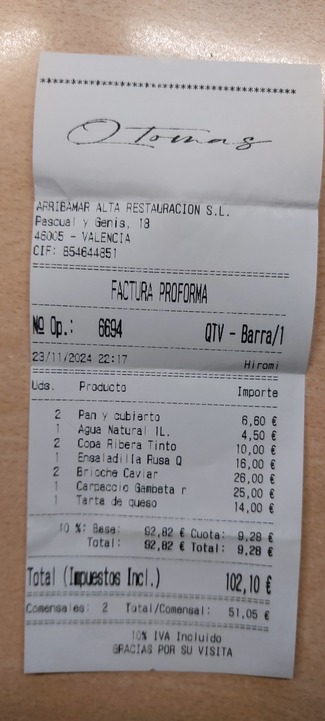 Local lleno, amplio,camareros corriendo-textualmente- por la sala con las viandas en ristre,realizando juegos malabares para que ninguna de ellas acabasen en tierra,lo que no fue obstáculo para darnos un homenaje de los que invita a repetir-sobre todo cuando finalicen Fallas,y haya mas tranquilidad y sosiego en el ambiente-.