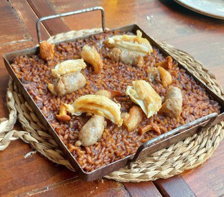 - Arroz seco de pies de cerdo con espardenyes, rebozuelos y salchichas (24 €) - Delicioso. 15:37 h.