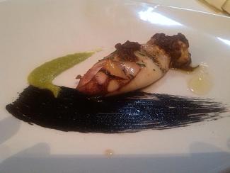 Chipirón braseado con cebolla roja de Zalla, bueno.
