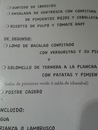En esta ocasión nos juntamos unos cuantos amigos de la cuadrilla y optamos por un menú concertado, por veintipico euros, no me acuerdo exactamente.