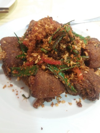 -Pies de cerdo crujientes con genjibre. Lo que mas me gusto, buen sabor de la carne con su punto tostado y un toque picante suficiente.