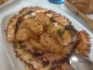 Pulpo a la brasa con patatas. Muy bueno. Tanto el pulpo como las patatas.