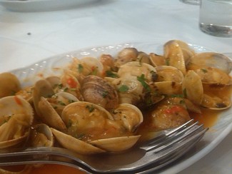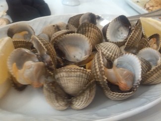 Berberechos de buen tamaño, almejas a la marinera, también muy buenas.