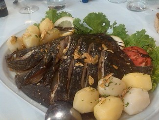 Rodaballo, para compartir, creo que nos sacaron dos, tamaño medio y después también compartimos una carne con chorizo y pimientos rojos, me encanto la carne, cadera de ternera, croca, la llaman, muy rica y tierna, pedimos por lo menos tres platos para compartir.