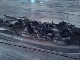 • Tataki de atún rojo sobre escalibada y salsa barbacoa japonesa. Una elaboración muy habitual en los restaurantes japoneses, más concretamente en los sushibares. Correcto marcado del atún sobre una base de escalibada (típicamente catalana y valenciana). No entiendo la salsa barbacoa, no le aporta nada a un atún de calidad.
