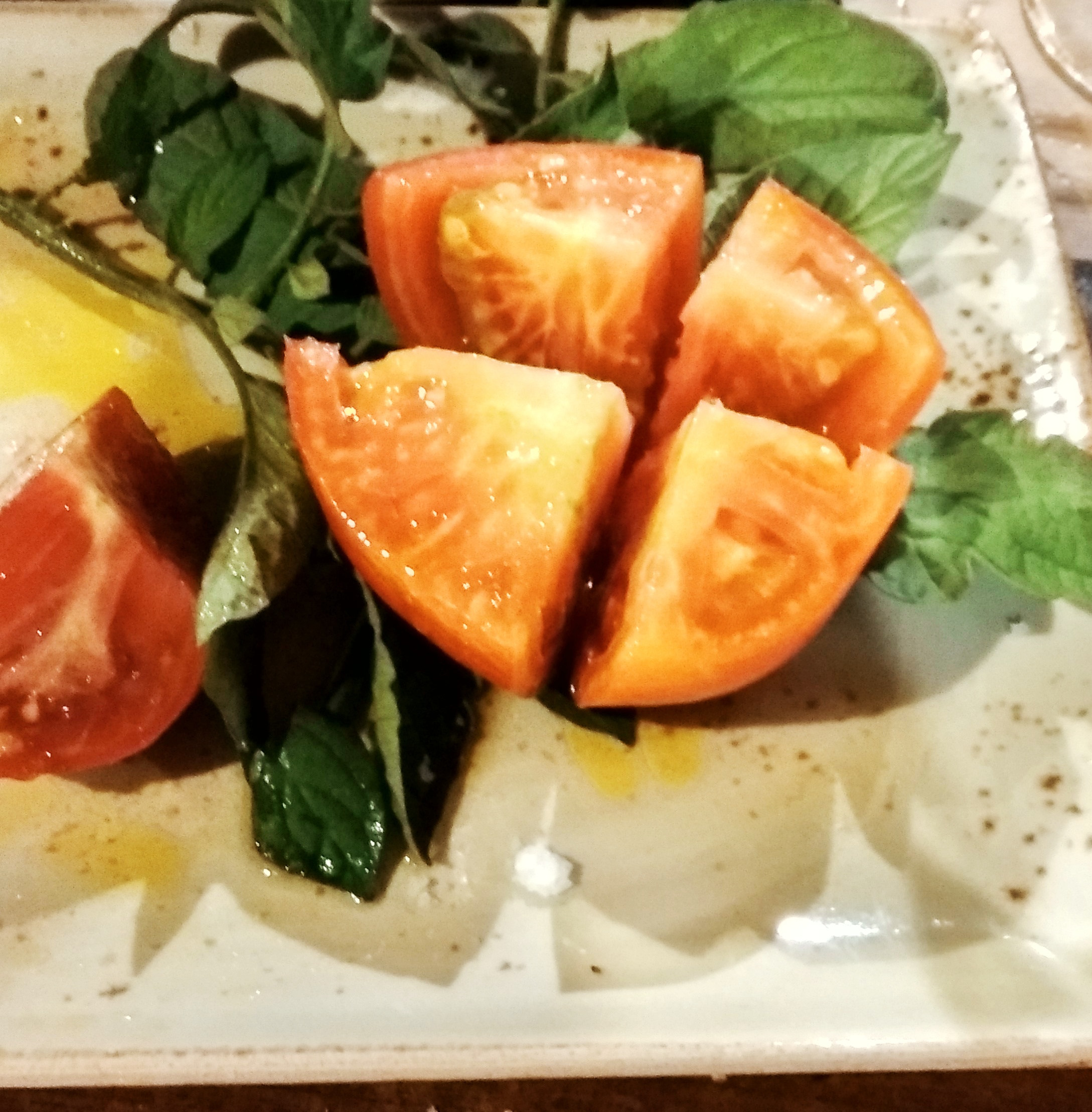 * Coca de "tomacat i pelletes" (espectacular la textura de la masa y las verduras con tomate y la piel en salazón del atún rojo).