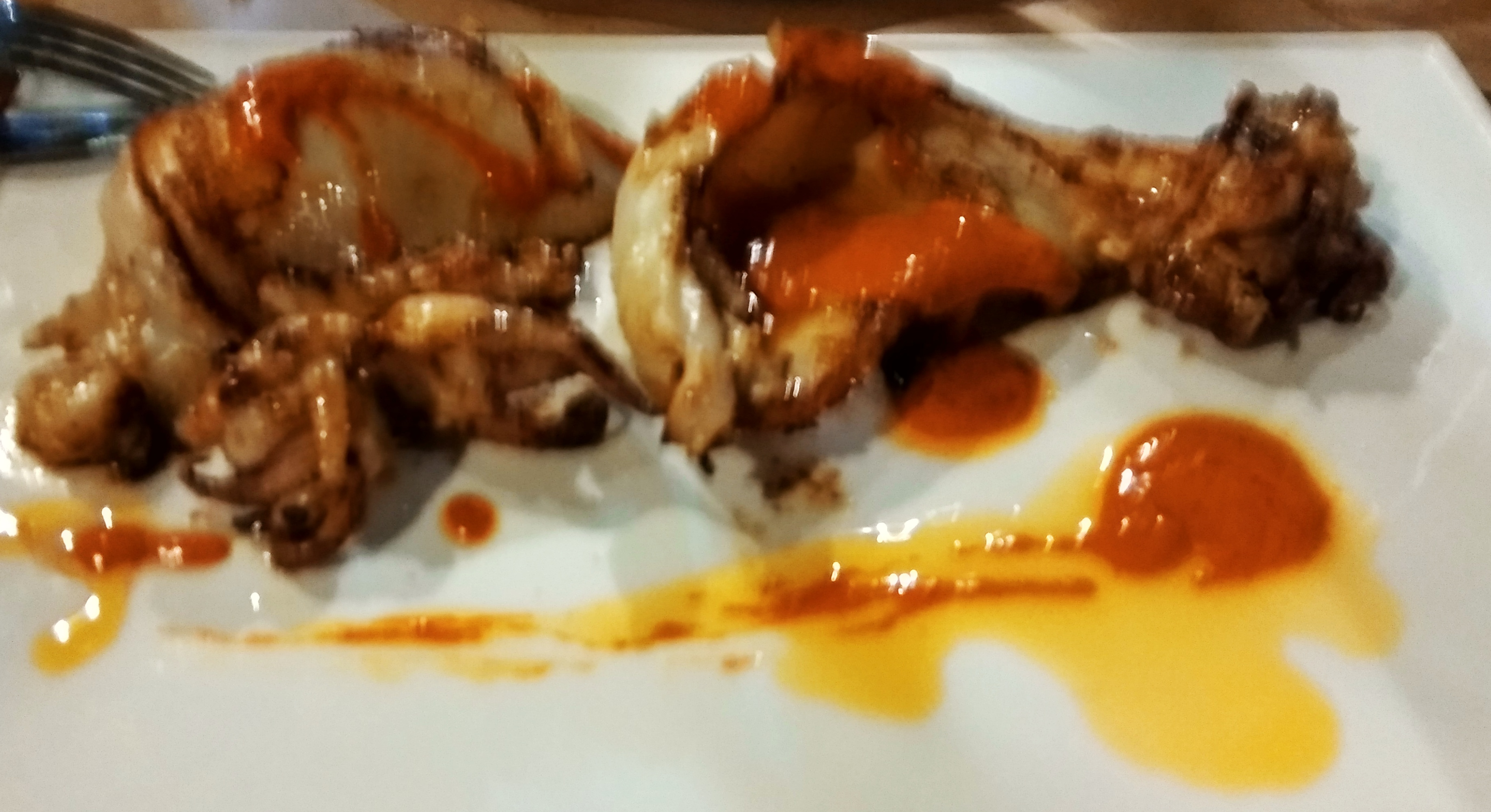 * Sepia bruta con salsa romesco (tierna y fresca).