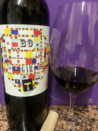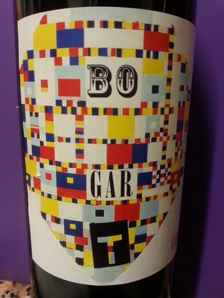 Llamativa etiqueta con fondo blanco que destaca sobre el negro, con colores entre Mondrian y carta de Ajuste. Bonito juego el del nombre – bobal, garnacha y terrerazo – bo (bueno) - "El Bueno (sugiere las letras de las pelis de vaqueros), el feo y el malo".