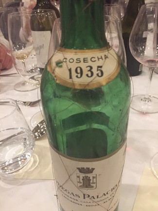 Probado en la cena de Rioja, un vino viejuno, que todavía tiene algo que decir, aunque para mí no me acabo de agradar. Excesivamente cansado. Color rojo muy pardo, marrón, descolorido, con muy poco color. En nariz aromas a cuero, maderas viejas y resina. En boca se le nota la edad, pero no está perdido, parece mentira con los años, redondo, con sabor a tierra y con los taninos presentes. A valorar por su evolución.