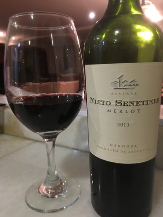 Tomamos este vino en dos comidas distiintas. En la primera lo maridamos con un filete de tilapia a la pimienta y unas gambas al ajillo. Fantástica combinación, las notas pimentosas iban y venían del paladar a la nariz, delicioso. En la segunda ocasión optamos por una carne, filetones de falda de res con mango. De nuevo una buena elección: Jugosa carne roja con tacos de mango fresco a la que los apuntes frutales y minerales del vino le vinieron al pelo. En definitiva un buen Merlot argentino, sí señor.