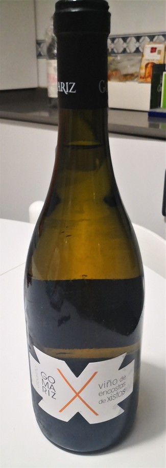 Compramos hace ya un par de años dos botellas de este albariño con buenas puntuaciones por los críticos elaborado en la DO Ribeiro. Curiosa etiqueta en forma de X, cuyo significado viene de “xistos” (esquistos en gallego), el tipo de rocas que conforman el suelo de la finca. Sacamos la botella de la nevera y la dejamos respirar unos 20 minutos hasta que alcanzó los 10°C para su valoración. Tapón un pelín corto, pero muy compacto.