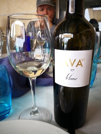 Estamos en Palma de Mallorca tras una aventura repentina en la cual nos subimos 6 amigos en una avioneta de uno de ellos y nos fuimos de Castellón a Palma a comer y volvimos. Benditas locuras, je,je... En el restaurante Ola del Mar del Portixol nos pedimos este vino blanco de la tierra de Mallorca, de Binissalem en concreto. Nos abren la botella y nos sirven a unos 8°C.