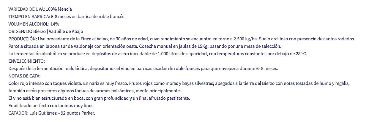 Vino seco, con acidez media+ y taninos altos (raspón y madera). Alcohol medio+ muy bien integrado.