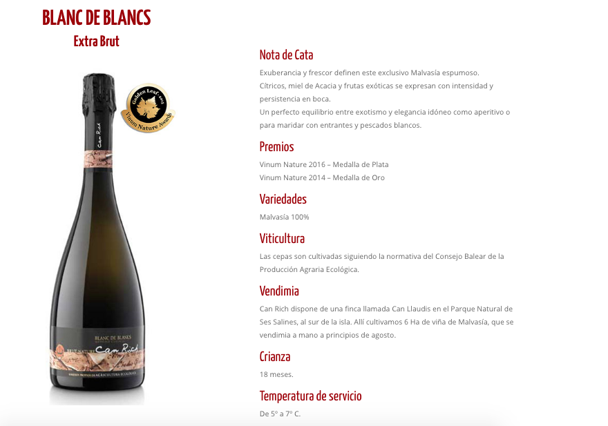 Año de fundación: 1997. CAN RICH. 21 ha de viñedo con 6 ha de Malvasía en el parque natural en Ses Salines.