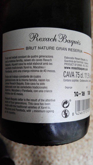 En boca define y marca lo apreciado en nariz, con una muy buena definición. Punto seco, es fresco, cítrico y de cierto tacto meloso. La burbuja de entrada es fresca, joven y viva, se funde de inmediato, es pura armonía, sedoso. Llena la boca sigue la estela de lo apreciado en nariz, notas de levadura frutos secos y la espléndida fruta blanca, carnosa y en su punto de madurez. Lo tiene todo con medida, sin cansar, sin abuso. Rica acidez (tan cítrica como salina) bien equilibrada que incita al trago y a la unión con la comida. Largo con recorrido...