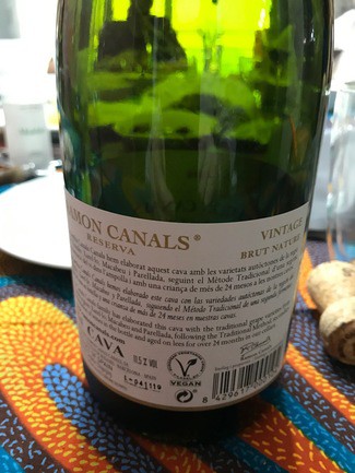 Este cava muy valorado y recomendado por uno de mis vinateros. Etiqueta muy elegante en blanco, negro y oro, contraetiqueta con información completa en catalán, castellano e inglés.