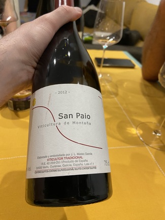 Este San Paio del 2012 denota que fue una añada cálida en nariz, con frutos del bosque acompotados y ciruelas en licor. Le salen notas terrosas, como a barro húmedo, y herbales anisados. En boca es pura energía mineral que corta a través de una boca amplia, sedosa y con peso, dándole un chute de vida. Simplemente maravilloso.