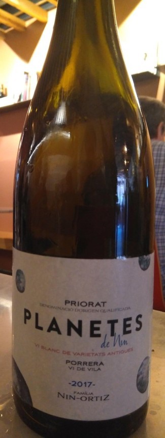 Fantastico vino.Conociendo la forma de trabajar de Ester y Carles,no podia salir otra "cosa" que un gran vino.En la parcela Planetes de Nin encontraron de forma casual unas plantas "extrañas",que resultaron ser viña de carinyena blanca rodeada por la garnacha original.Elaboran muy pocas botellas(una lastima).Tiene un color amarillo ,brillante.La nariz con intensidad media,muy compleja,frutas blancas,especias,pimienta blanca,melocoton,citricos...En boca textura media,buena acidez,con presencia,punto salino,mineral.Muy largo.Nos ha gustado mucho. Buena RCP.