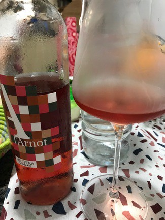Éste de la Terra Alta, presentado en botella bordelesa, etiqueta cromática sin mucha historia, contraetiqeuta con información escueta en catalán.