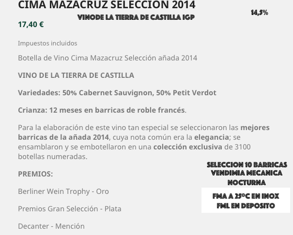 Vino de alta concentración, con media complejidad ya apto para el consumo actual.