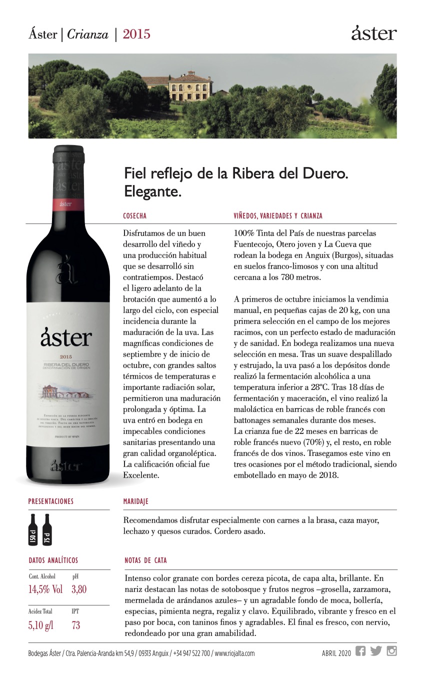 En nariz aparece la fruta negra madura, moras, hierbas aromáticas, fondo especiado a tabaco, regaliz y sutiles notas lácteas.