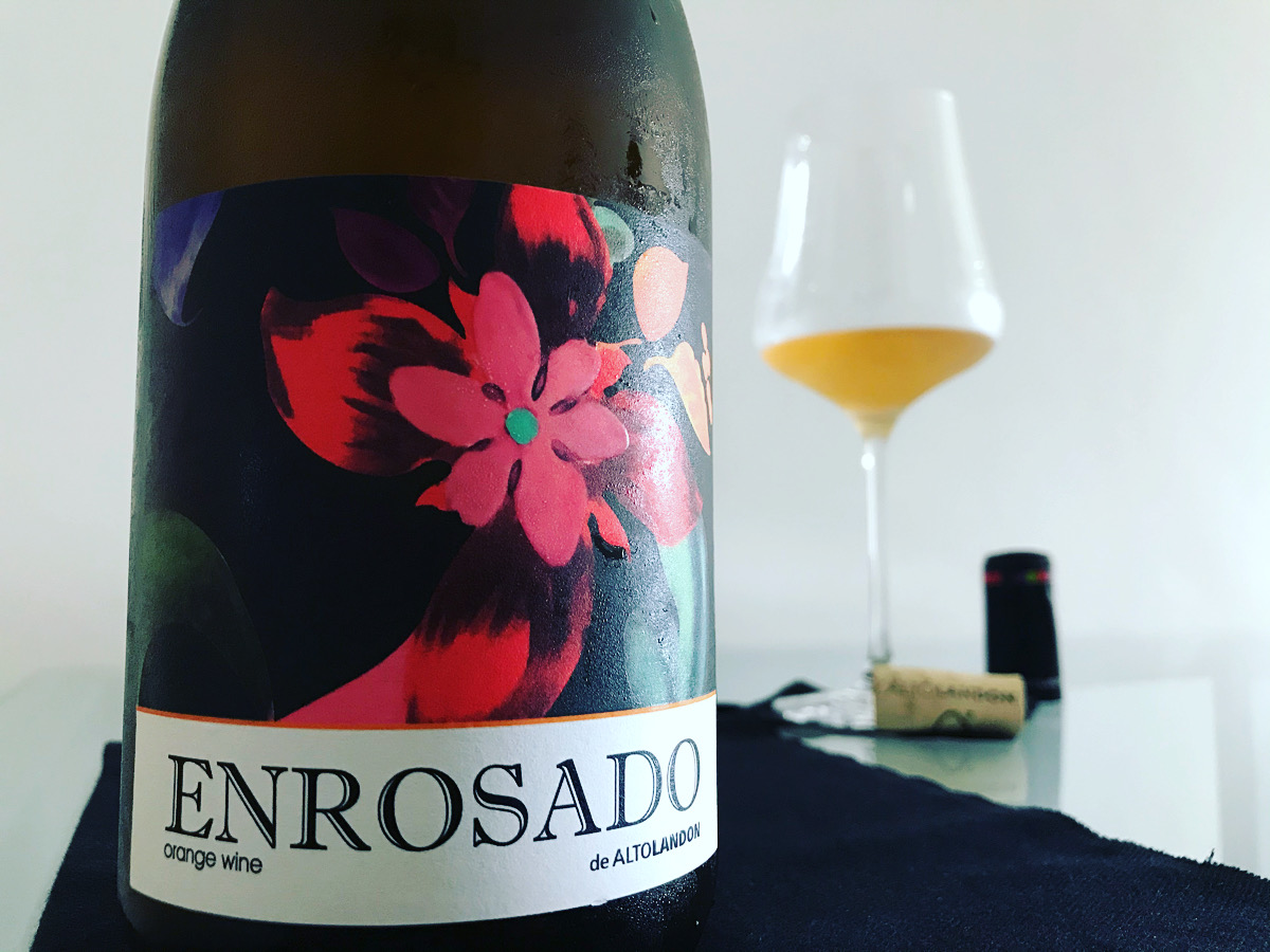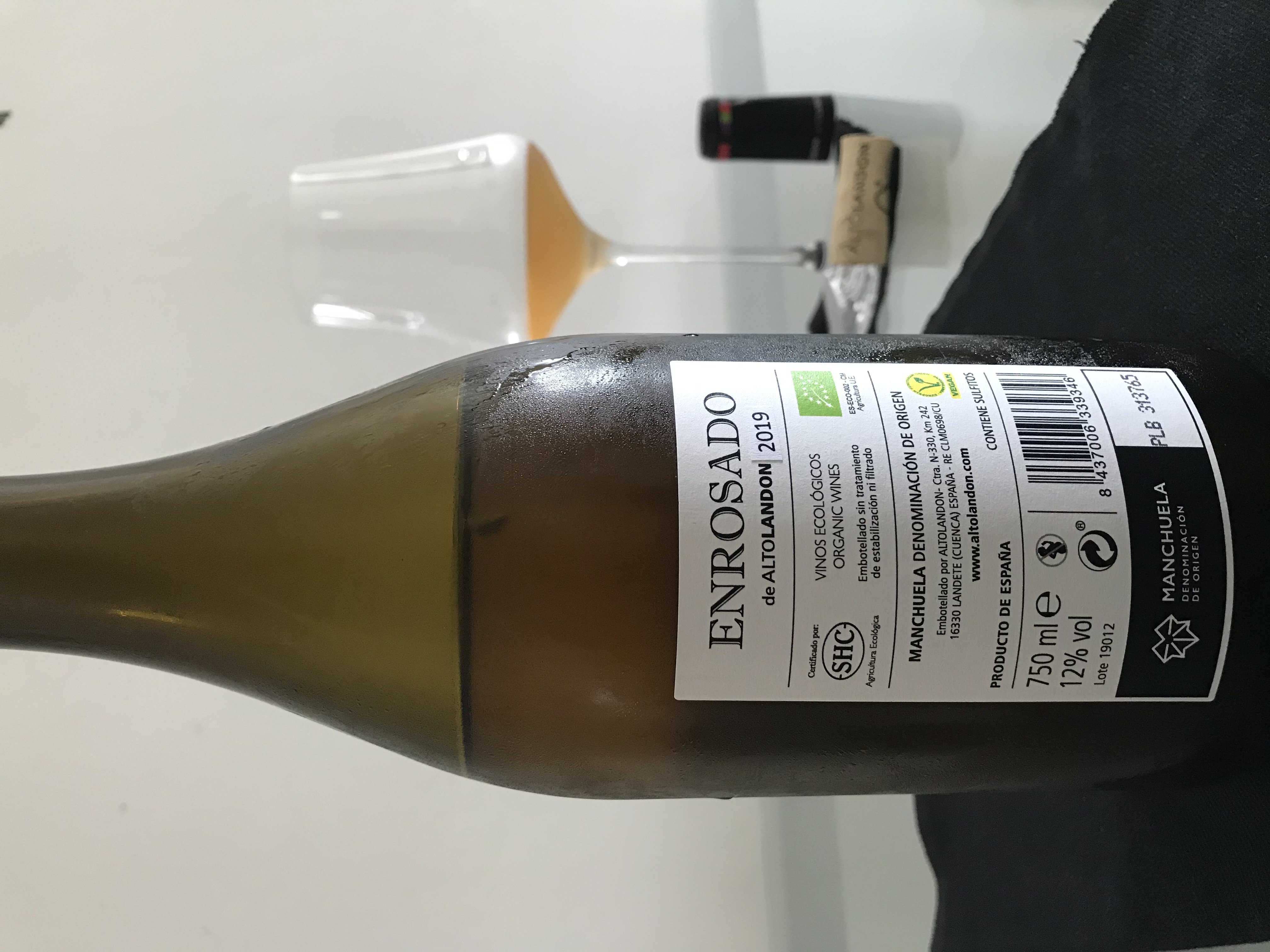 Limpio y con la turbidez de un vino no filtrado por ser ecológico, Orange wine , vegano. Color ámbar ( naranja), de media intensidad, corcho certificado bien. Etiqueta floral como Rosalía.