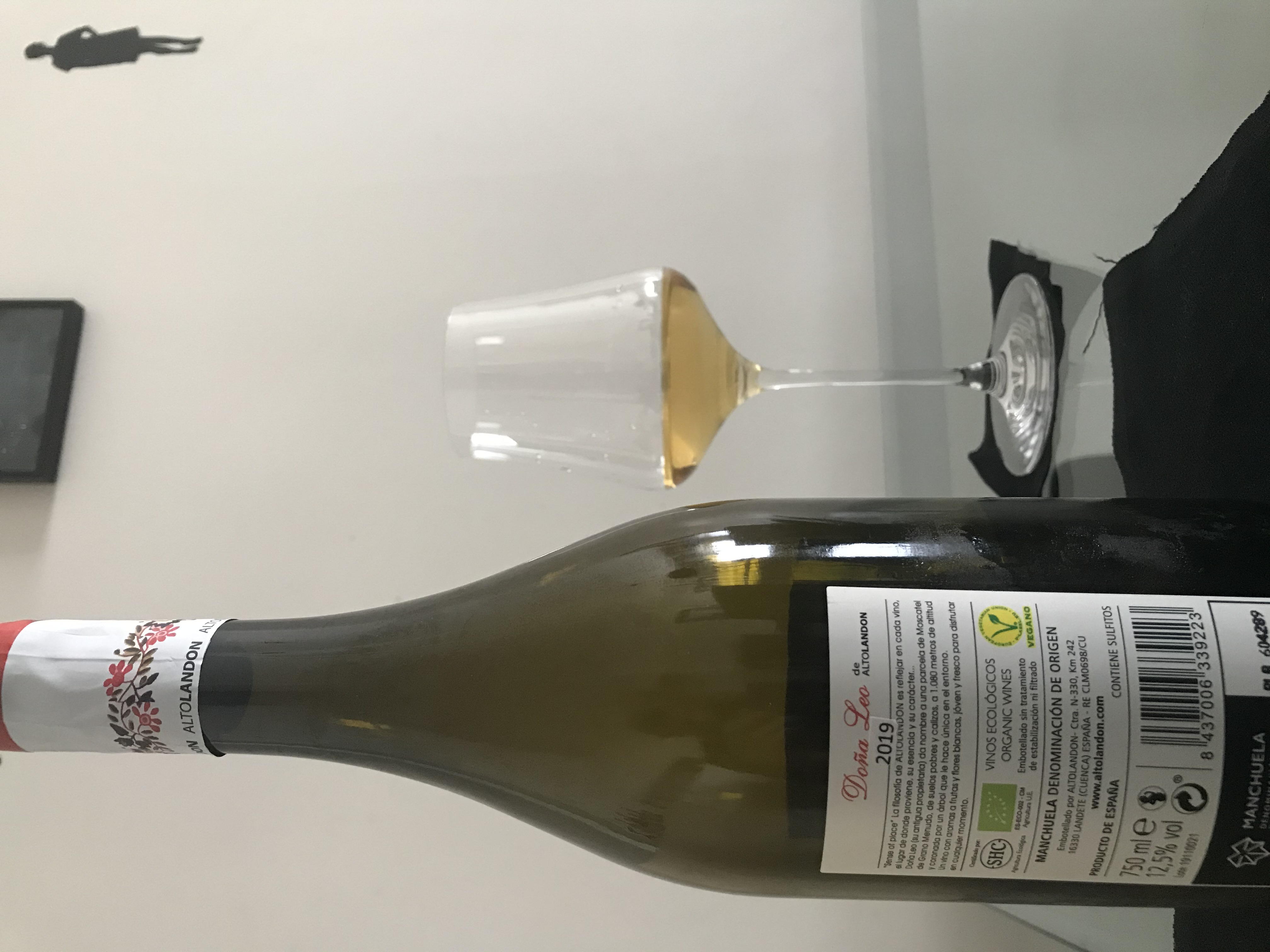 En mi boca es seco, con media acidez y alcohol medio. Taninos de la maceración suaves , sutiles como herbáceos ( té a la menta), cuerpo medio+ con alguna nota de crema fresca y las puntas finales amargas de la moscatel que recuerdan algo a una Gewurztraminer sin serlo.