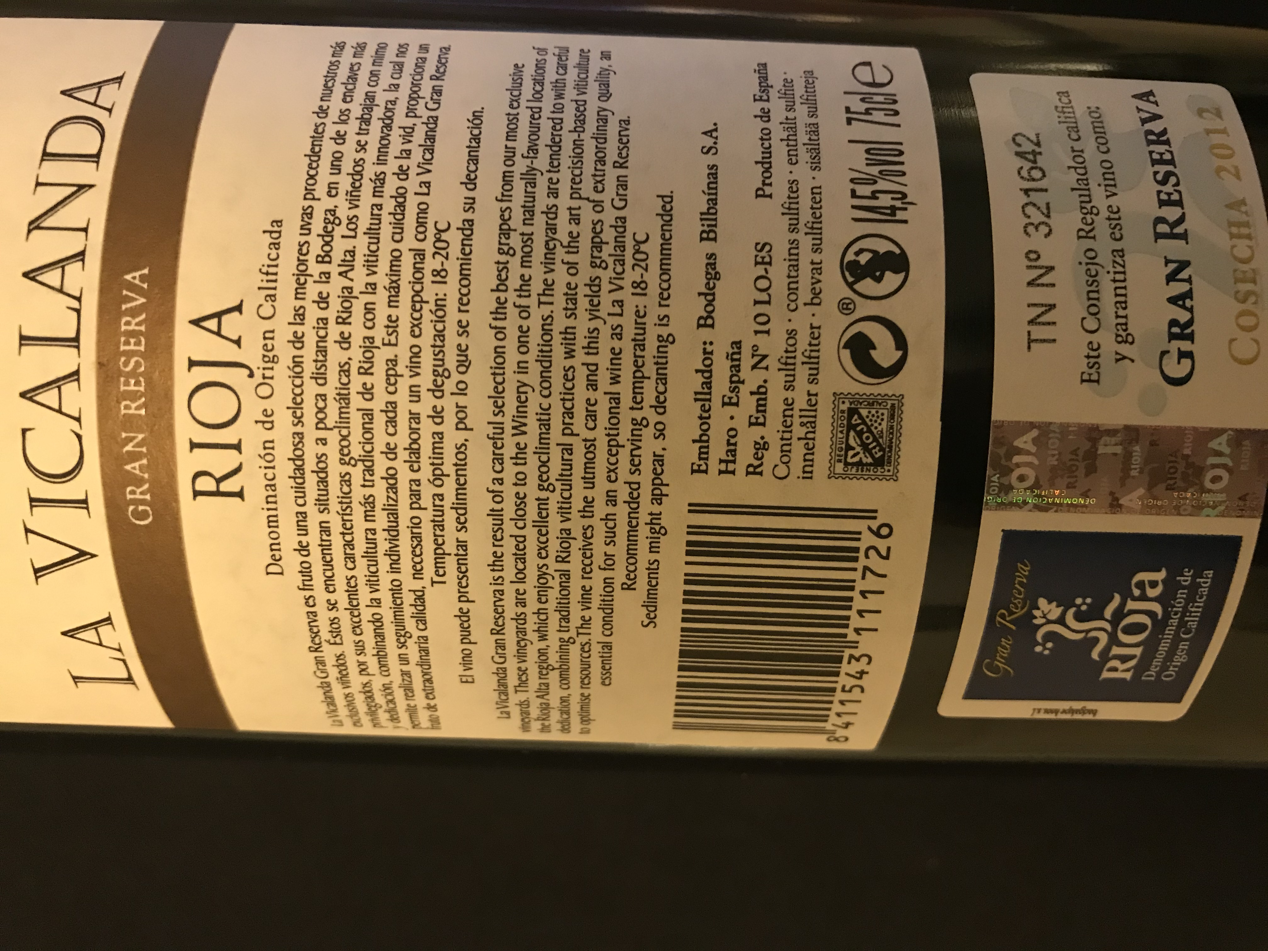 Un vino espléndido desde principio a fin, sin necesidad de decantar o abrir con tiempo pues se comporto como un pañuelo de seda o una piedra de Jade, especial , afinado, cremoso, envolvente, listo para un "tu y yo".