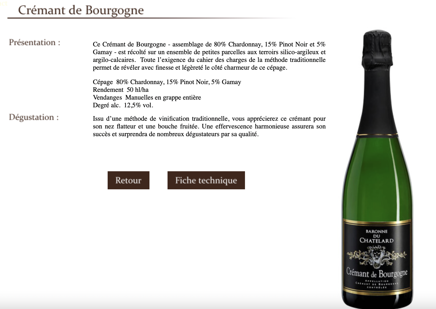 Espumoso rústico de la Borgoña, afrutado y meloso, con buena burbuja y fruta.