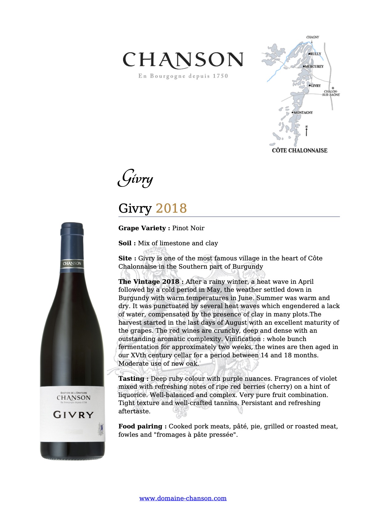 Vino de Borgoña sura en la Côte de Chalonnaise, donde se encuentran uvas blancas y tintas. Esa es uno de los vinos Villages, sencillo, afrutado, mineral y vegetal, al uso de la variedad algo más cálida pero manteniendo frescor y tipicidad.