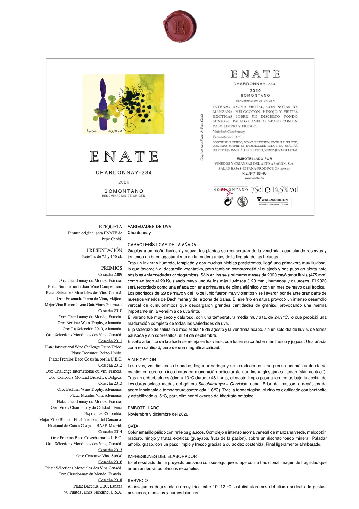 Vino blanco de color amarillo limón pálido, brillante, aromas untuosos, con notas que recuerda a pera, manzana Fuji, Mango, hinojo, pino, monte bajo. joven con puntas de lías como yogur de limón. En boca es seco, con acidez media y alcohol medio+. Cuerpo medio+ con notas de lías como crema de leche, final medio+ con notas de pera de agua, pera Williams, miel de campo y unas insinuaciones de anís.