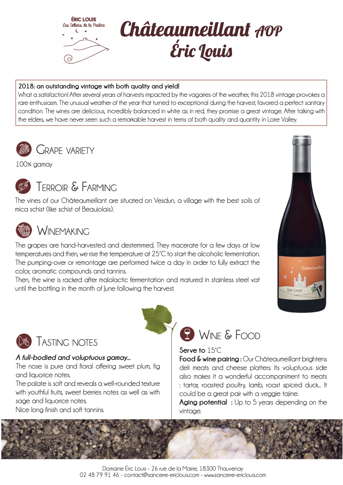 Vino rubi pálido, brillante con aromas medio plus , limpios, con concentración, mucha flor y frutos rojos silvestres. Violetas, mora, cereza, fresa, miel de campo, piedra, herbáceos (te). Seco con alcohol medio plus, acidez alta, taninos medios jugosos, refrescante, con sabores de ahumados, de zona fría, largo en boca y pronunciado. Deja notas de fruta madura como guinda.