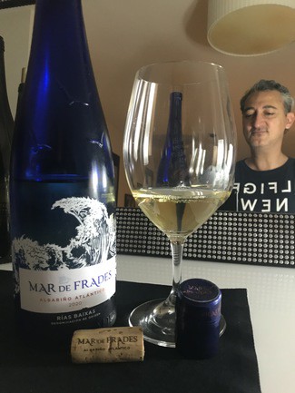 Magnífica cata virtual con Mar de Frades. Atractiva botella, archiconocida, con una etiqueta que evoca directamente al mar, al Océano Atlántico; a Galicia.