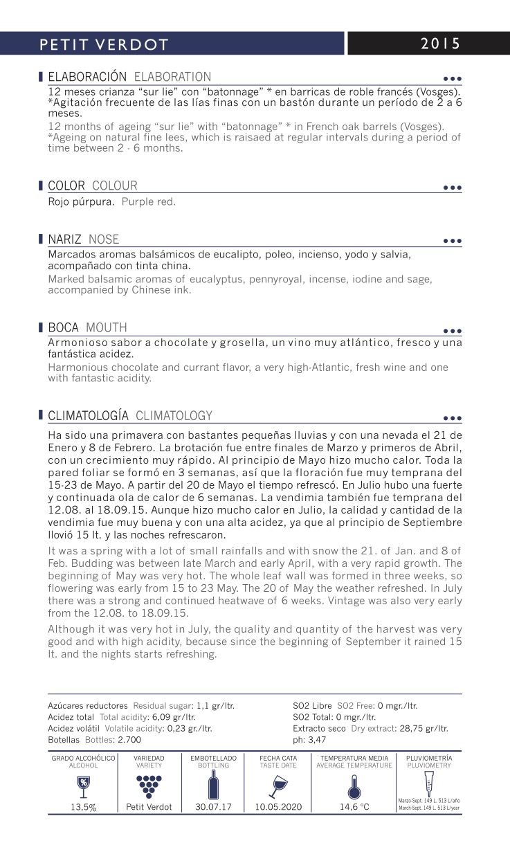 Seco, con acidez media+ , alcohol medio y taninos altos con el frescor y justo verdor. Mucho cuerpo, intensidad medio plus. Final largo aterciopelado, equilibrado y con mentolados y eucalipto.