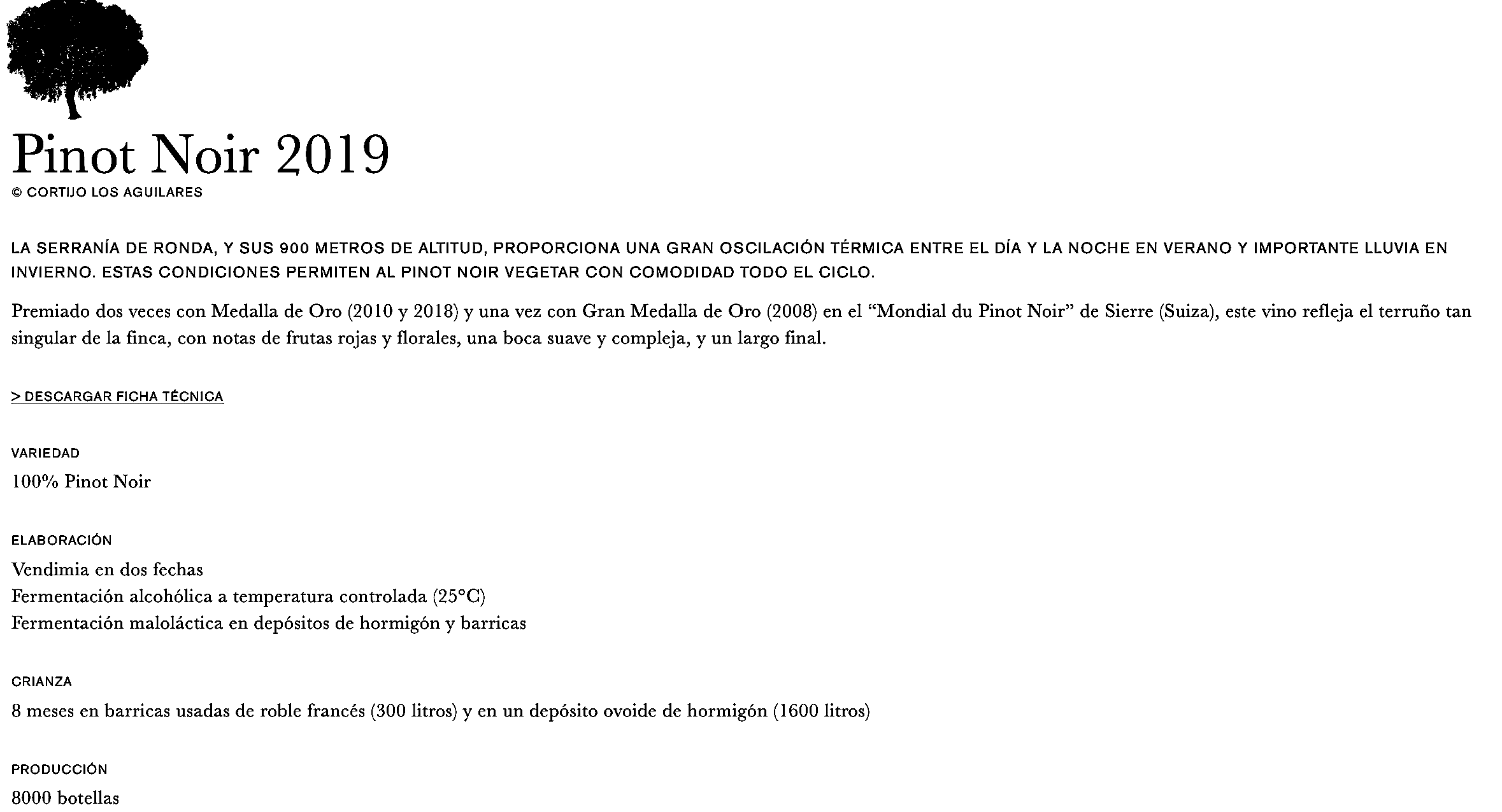 Esta Pinot Noir de Las Sierras de Málaga, es una dama elegantemente vestida con un traje de seda, que baja cariacontecida por una escalera de mármol de Carrara, rememorando sus lujosos días de palacio en La Borgoña.