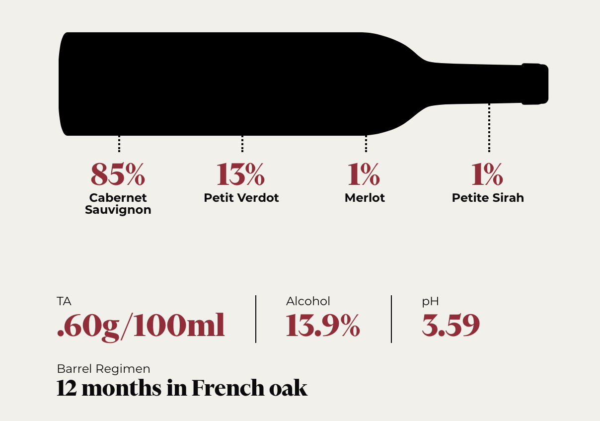 Acidez medio+, alcohol medio y taninos muy pulidos medios. intensidad medio+, cuerpo medio, final medio con sabores que recuerdan anís, vainilla, caramelo, miel, moras, melaza.