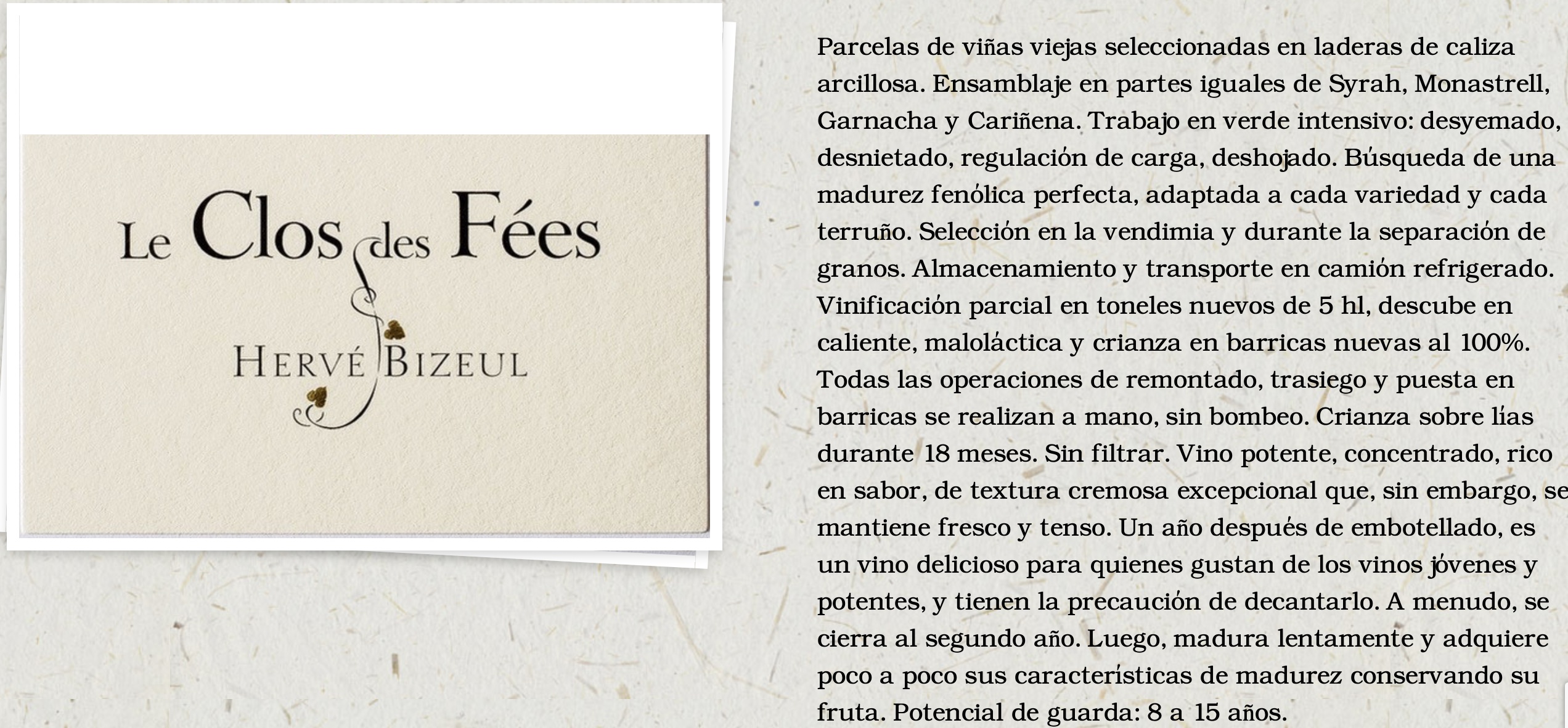 Alcohol muy alto en boca, seco, con acidez medio+, taninos ++++. Está muy potente y bestia. Necesita tiempo y tranquilidad, evolución. Le cuesta abrirse, para dar notas de intensidad media+ a cacao, miel, pino, menta, mucho terroir arcillo calcáreo y calidez del Rousillon, pero con frescura en boca. Final medio+ con mucho cuerpo.