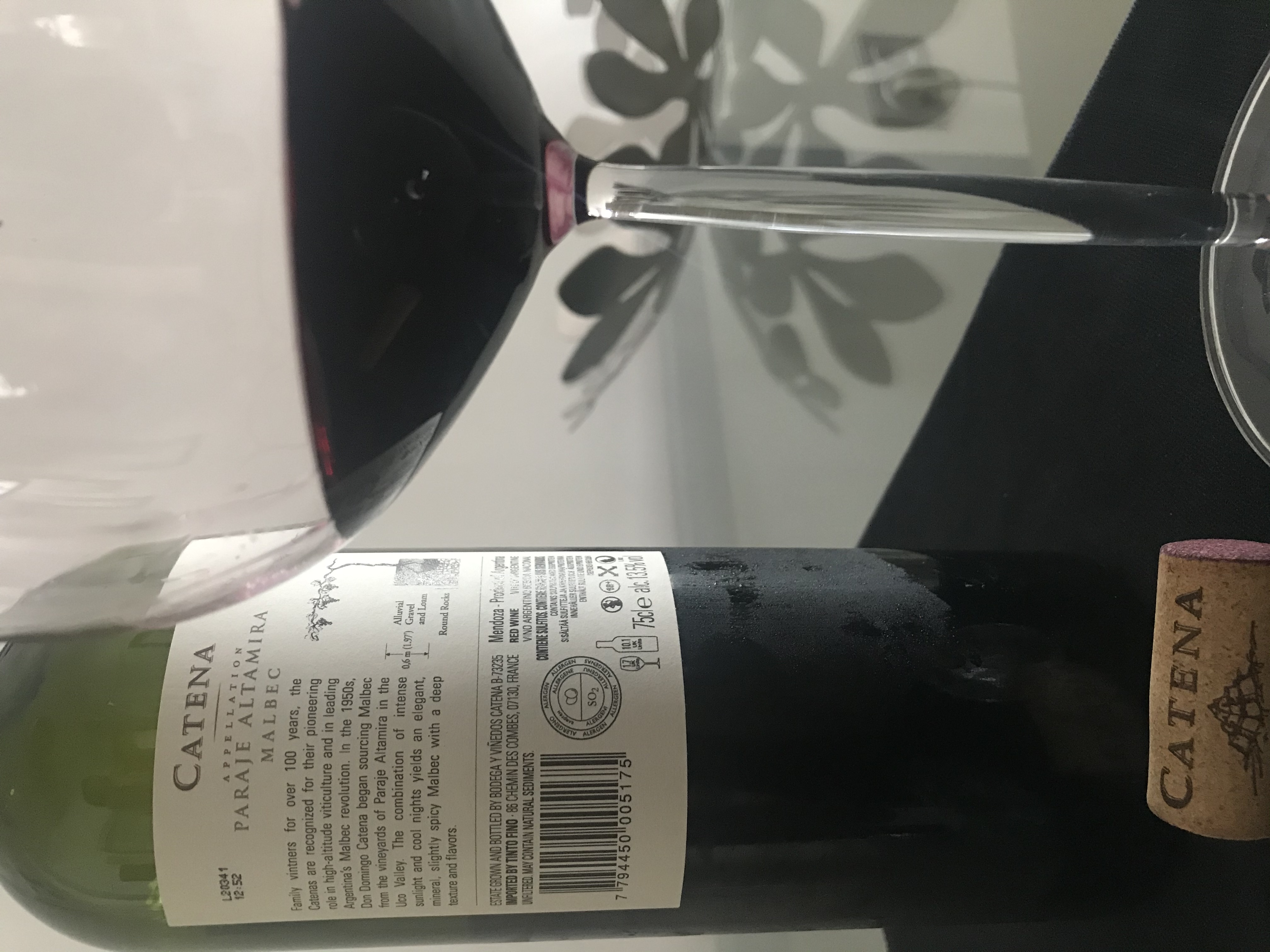 Nos hemos agenciado este singular Malbec muy bien puntuado por las guías y de una bodega tan prestigiosa como lo es Catena Zapata, mucha ilusión por probarlo pues se trata de su proyecto "Appellation" en donde asimilan las zonas de cultivo a las parcelas de los Chateaus franceses... Bonita etiqueta frontal con un mapa vintage ubicando el Paraje Altamira. Producción restringida a 9.000 botellas tan solo. En esta ocasión tuvimos la botella abierta desde el día anterior y con tapón de vacío antes de proceder con su valoración a 16°C. Tapón de porosidad media y tintado tan solo en su base.