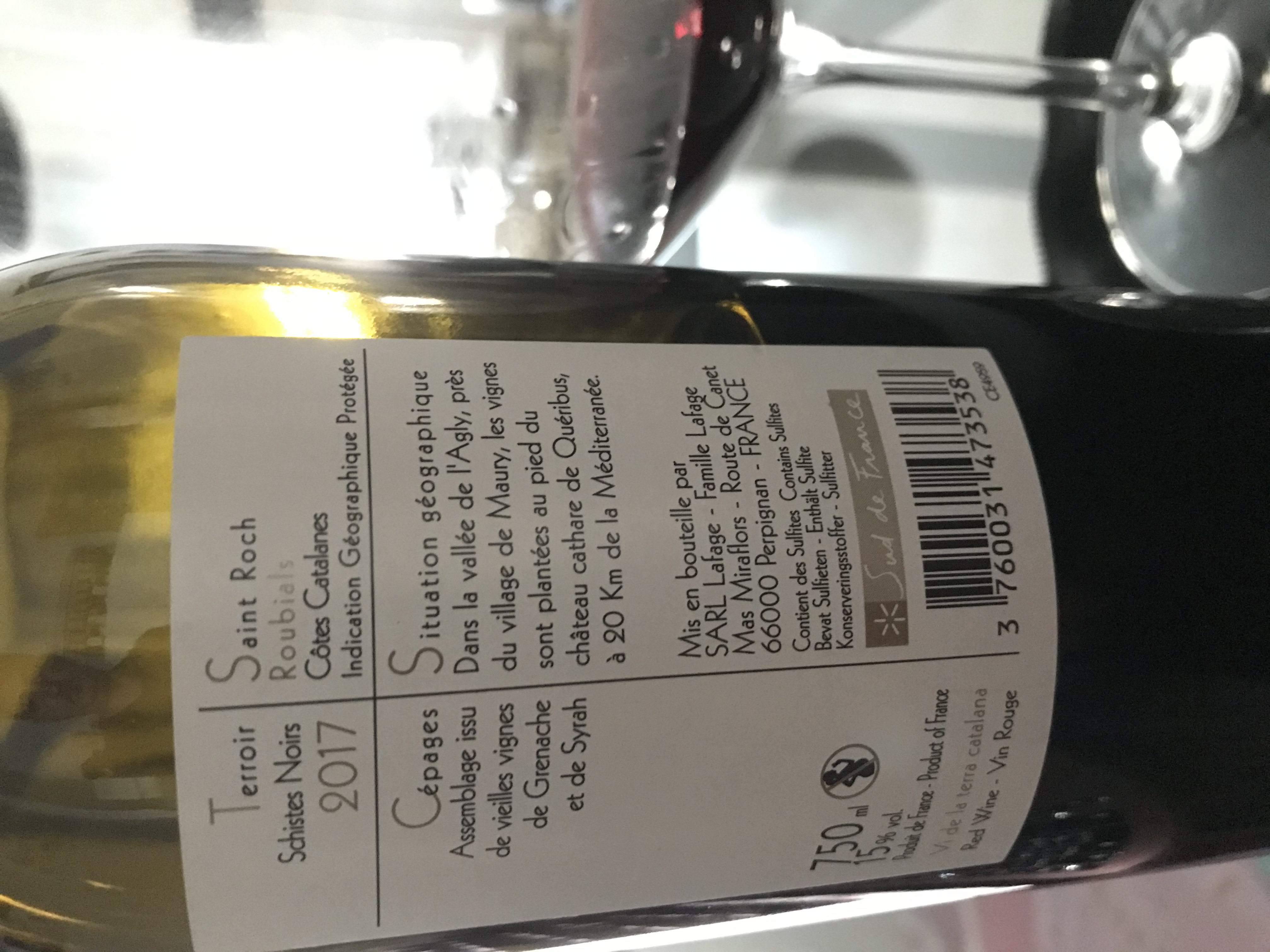 Vino tinto del sur de Francia, con Garnacha madura, Syrah especiada y mucho volumen. Color granate oscuro profundo y mucho brillo. Corcho bien. Aromas profundos, de fruta negra con intensidad medio+. Vino limpio a los 30 min. de su apertura ( sin decantar). Aromas de fruta negra como mora, arándanos, miel de campo. canela, frutos secos, pimienta. goloso. En boca es seco y con mucho alcohol, pero no descompensa. Acidez media, taninos medio+. Intensidad media+ y mucho cuerpo. Final medio+ afrutado. Destaca en boca fruta madura y terciarios, todavía sin equilibrar pues le queda mucha vida, es pepino.